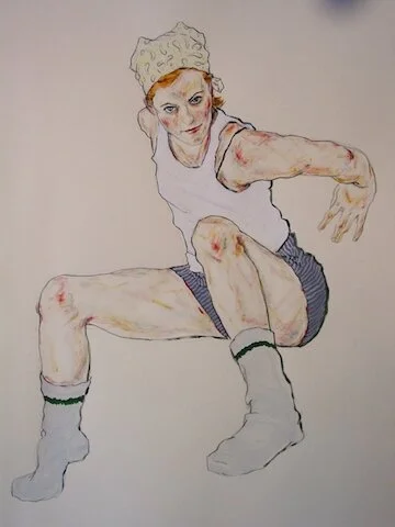 Hope Ashworth began painting in her early 20’s. After studying dance and working as a professional jazz dancer for a few years, she decided she needed a break from performing. She enrolled in art classes in Los Angeles and there it all began for her as an artist. Figure drawing and painting was her primary focus which made sense as she had just come from a life as a dancer. The beautiful shapes the body can create in dance she was able to connect with on the canvas. As a dancer, she was very inspired by Bob Fosse, so it wasn’t a big jump for one of her art inspirations to be Egon Shiele.
